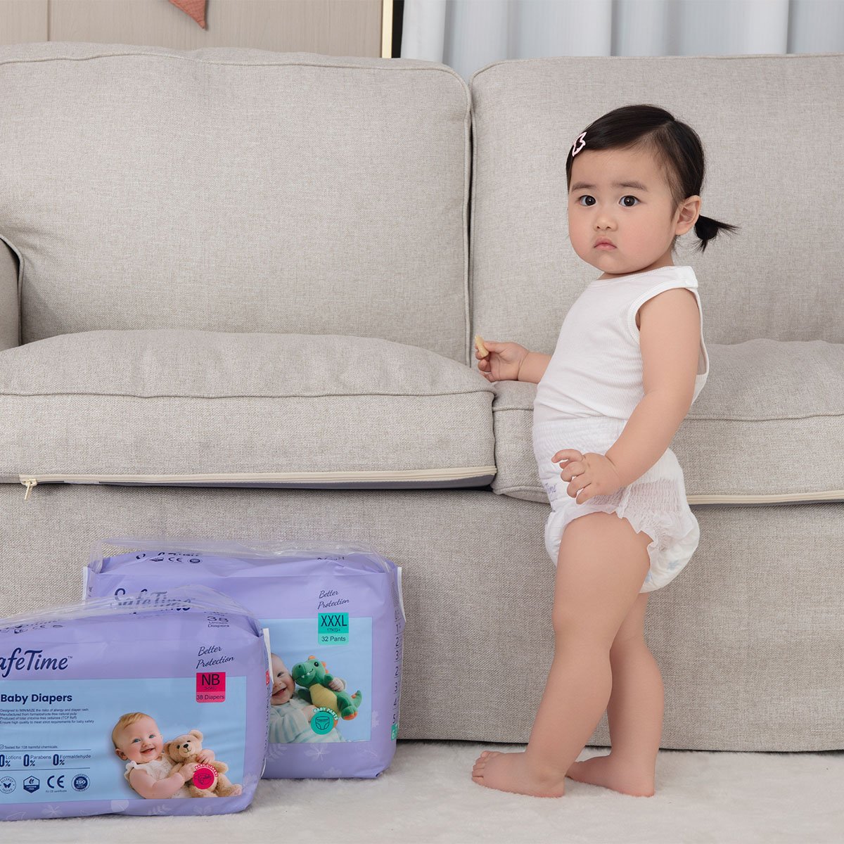 Safetime Pull-Up Baby Pants L – Super Absorbent & Leak-Proof for Energetic Babies